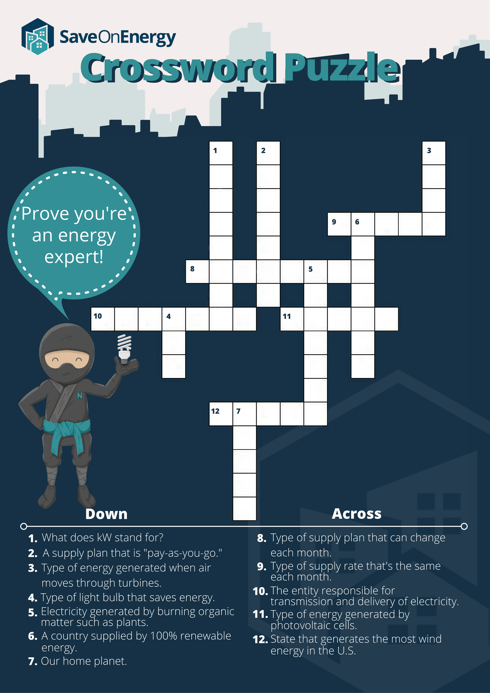 For now, have some fun and see if you can solve our SaveOnEnergy crossword puzzle! If you have trouble, feel free to click the button at the bottom of the page to see the answers. Or if you'd like to have a printed copy, click on the puzzle to open a new tab and print. Enjoy!